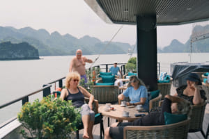 The bus will arrive at Tuan Chau marina and reach our pier, where our welcoming staff will be waiting for your arrival with a big smile. A complimentary welcome drink will be served, and a quick briefing as we set off into the bay.