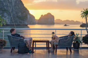 Complimentary Vietnamese teas, fresh fruit, and little cakes to keep you satisfied until you return to Hanoi. While the sunset starts to drop and the sky fills with deep red, purple, and yellow, enjoy the return sail back.